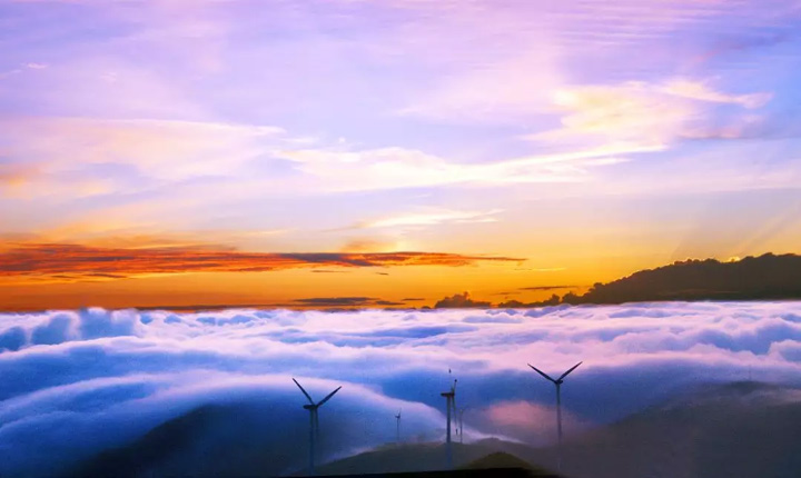 廣闊的高山草甸,大片的風車陣…東白山沒有精雕細琢的青山秀水,卻有蜿蜒曲折與豪放大氣。東白山之美,勝在山頂絕佳的風景。置身這藍天之下、白雲之上,完全是一種超凡脫俗的感覺。當肆虐的北風呼嘯而過,初雪過後,霧凇掛上枝頭,潔白晶瑩的霜花在陽光照耀下透著絲絲涼意。
