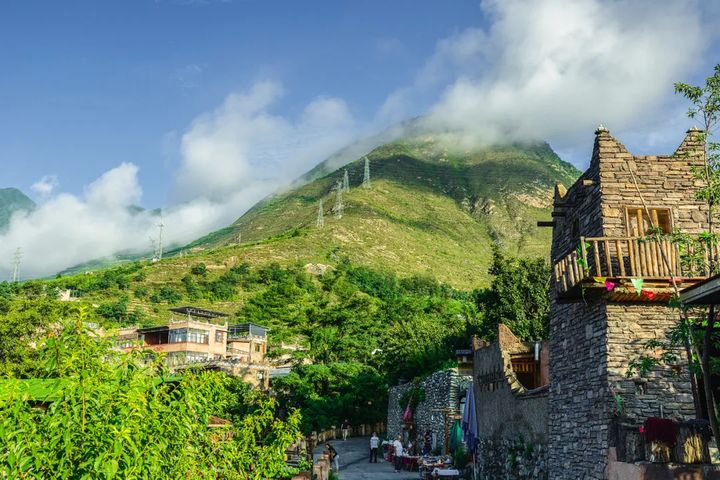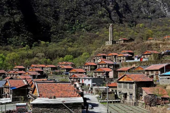 羌風濃郁,白石褐牆,清溪靈動