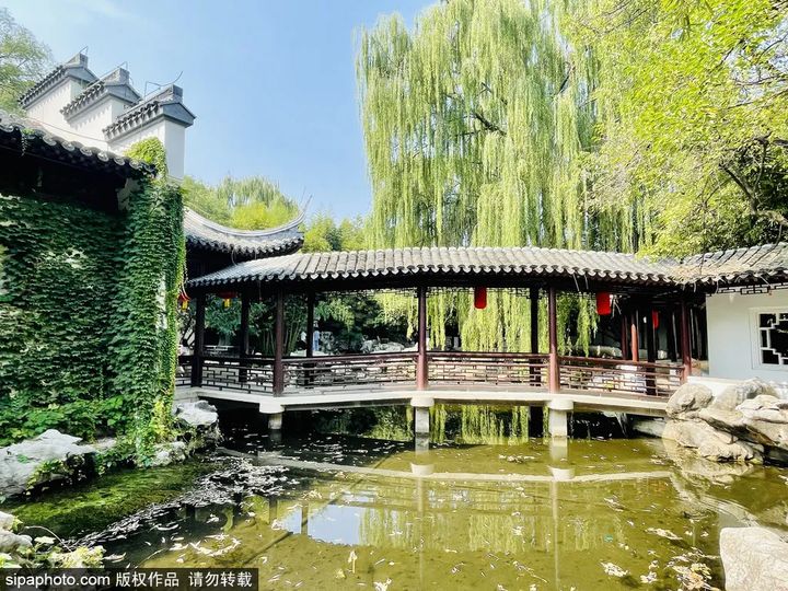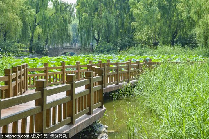 南長河河堤採用仿漢白玉石欄杆建造,河兩岸碧柳連天,岸邊可供遊客行走。 夏日裡來此漫步,欣賞河濱風光吧。