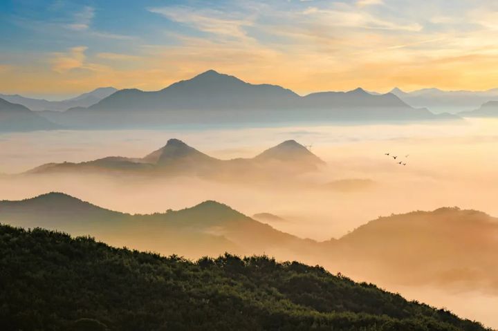 雲海翻騰,宛如大海裡的驚濤駭浪一般。 壯觀的雲海和秀美的山色交相輝映,瑰麗震撼,變幻無窮,令人目不暇接。