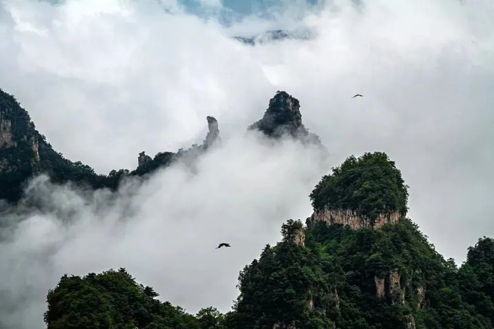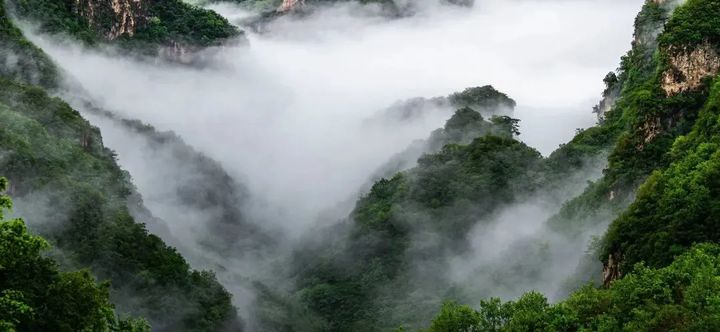 這裡崖深岫險,雲生嶺上,一場大雨過後,雲氣在蒸騰下氤氲而起,山中盡顯清涼。 翠峰掩映,雲海翻騰,山巒在雲霧中時隱時現,變幻莫測,遊人徒步山中,如臨仙山,如步畫卷。
