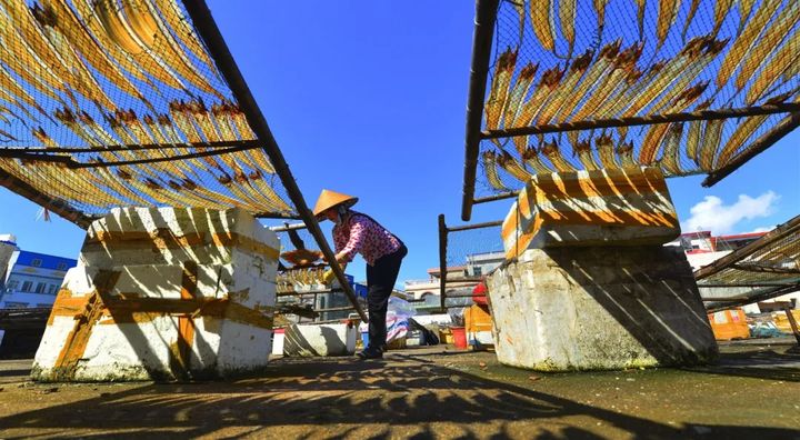 為美麗的漁港增添了一道悅耳的勞動樂章