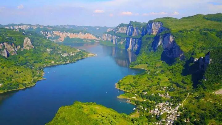 沿路湖水清澈澄深,倒影沉碧,寧靜秀麗,兩岸峰壁險峻,氣勢恢宏,斷層壁畫神秘多姿,鬼斧神工,景觀眾多。