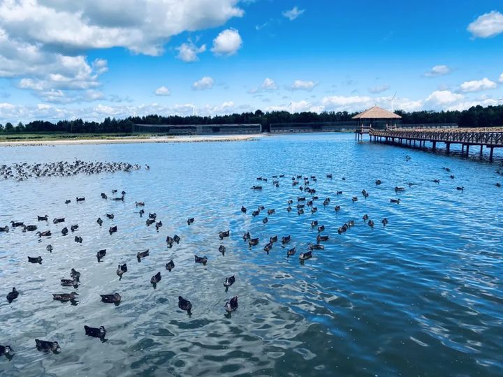 同樣是藍,也不盡相同。日間是晴空萬裡白雲悠悠下的一抹淺藍,松原查干湖景區野鴨湖藍天如洗,成群結隊的野鴨、大雁在湛藍的湖中繁衍生息,大自然最原始的景象在這裡完美融合,這便是世間最純粹的美。