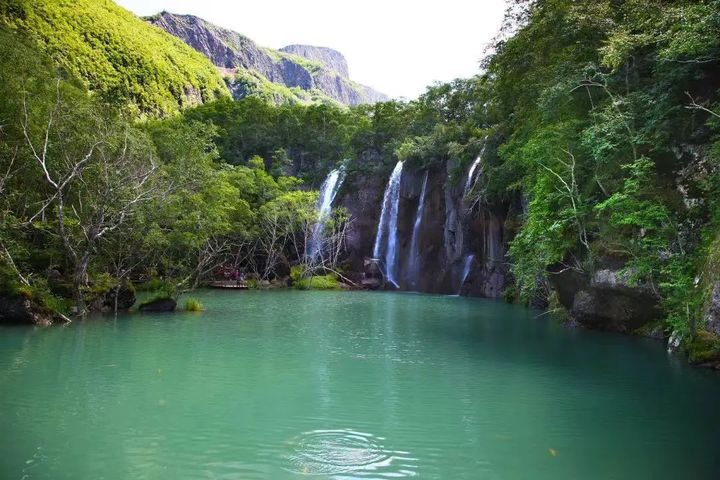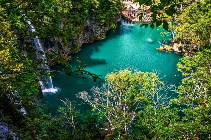 長白山北景區綠淵潭因一潭深邃碧水而得名,是遊人打卡長白山的必到之地。飛流直下的綠淵潭瀑布,最高落差達26公尺,水流沿著巨石落下而四散,流入深潭,這裡是長白山一處迷人的所在。