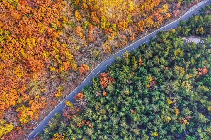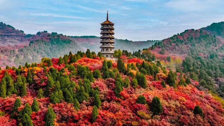 秋天,漫山紅葉如同被打翻的調色盤,從山頂暈染開來,在山間肆意流淌。