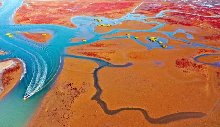 秋風吹來,黃河口濕地便如同一片廣闊無垠的紅毯。