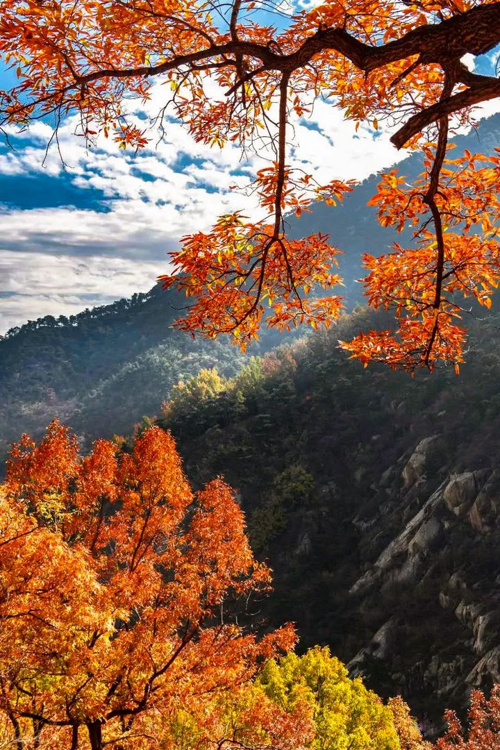 山東的秋天,平均氣溫在10°C-25°C,溫度適宜,且秋色秀美,藍天、碧海、名山、陽光、落葉......