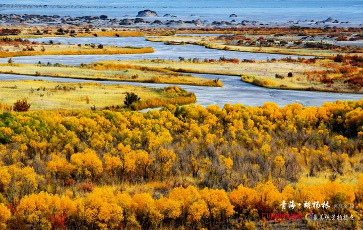寫格爾木胡楊林如火焰般燃燒於戈壁