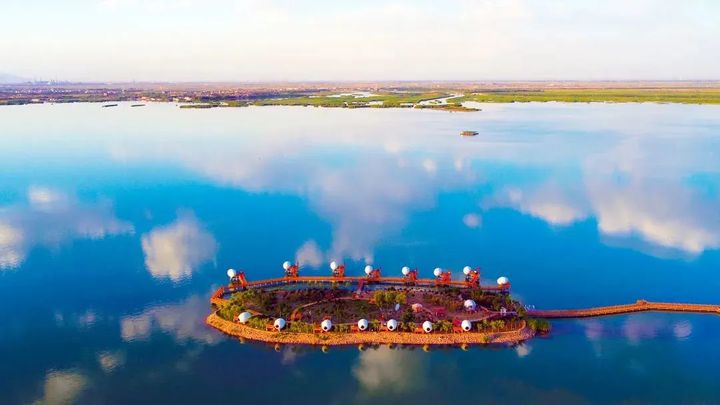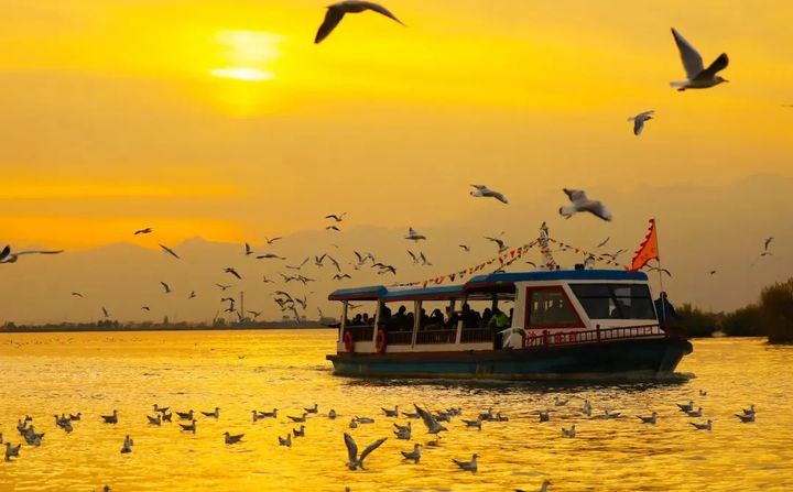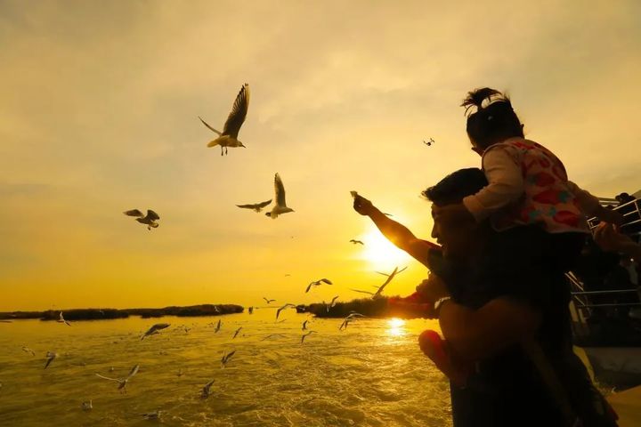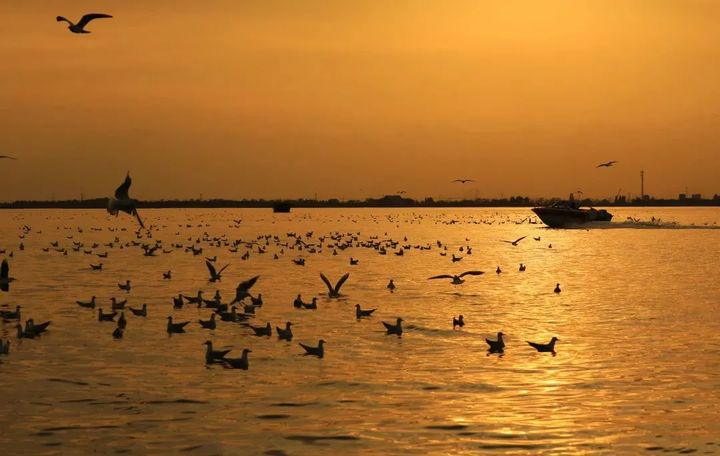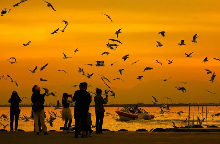 秋天的暖陽將沙湖的水面照得通紅,翩翩起舞的紅嘴鷗每年都會在春、秋兩季的遷徙途中經過沙湖,落腳景區,休養近一個月,數量也從最初的幾百隻、幾千隻增加到如今的上萬隻,當成群結隊的“小精靈”出現在沙湖景區的上空時,人與自然和諧共處的生態理念在這裡得到了最好的詮釋。