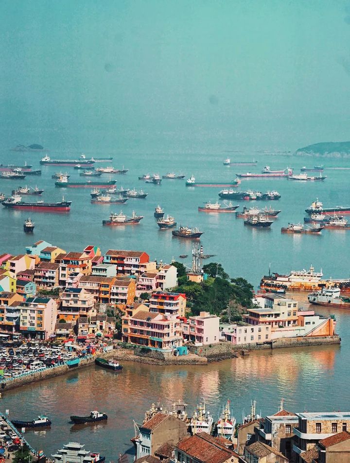 登上山頂,三面環海的七彩小箬村全景收入眼簾,漁船如同枕戈待旦的士兵,整齊劃一地蟄伏在石塘半島的避風港。