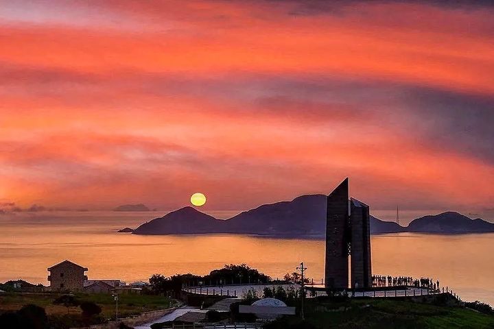 兩支相對的碑柱高高聳立,如同兩扇豎起的門板,象徵著新世紀的大門已打開。 等待第一縷陽光灑向海面的過程溫柔又治癒,儘管淩晨睡意朦朧,但紅日噴薄躍海後氤氳的光線,能讓所有早起的苦悶煙消雲散。