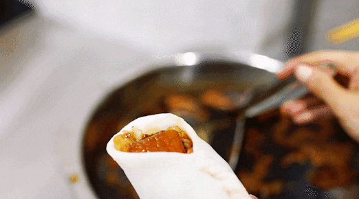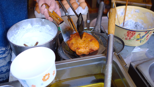 最後再舀一勺濃鬱的肉湯,合上捏成餃子狀,一個巨型“餃子”——嵌糕,就做好了。