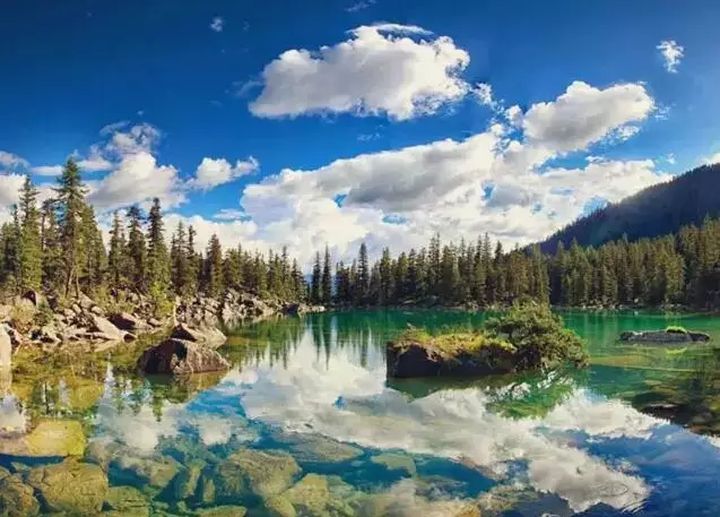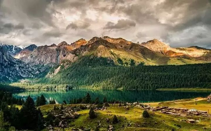 湖光、山色、森林、草地、溪流