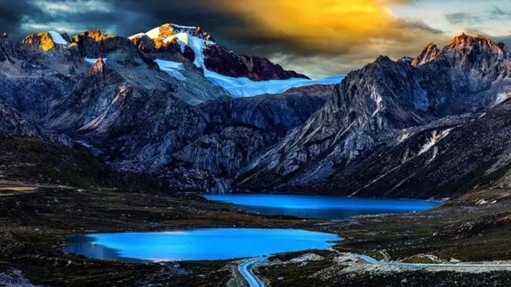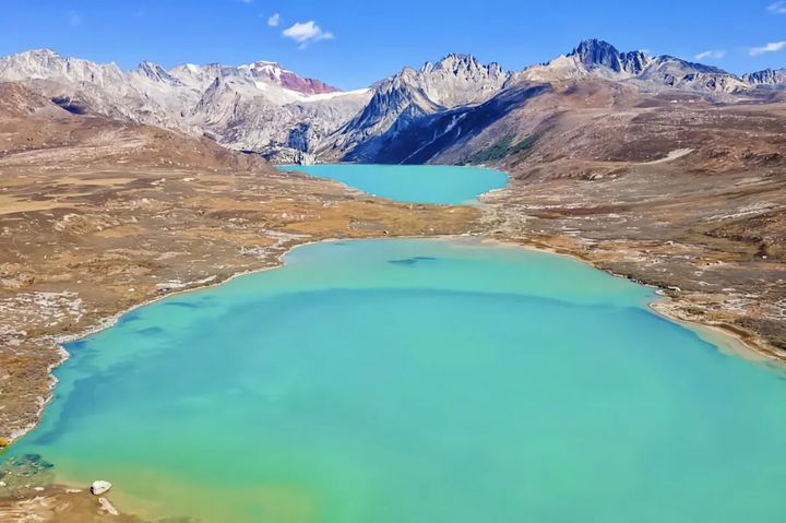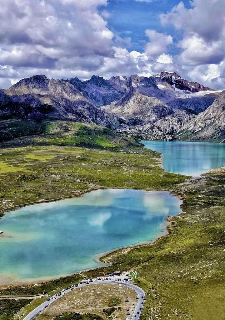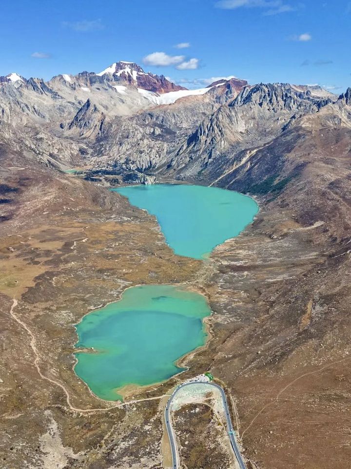兩處碧藍澄澈的高原湖泊緊緊相依