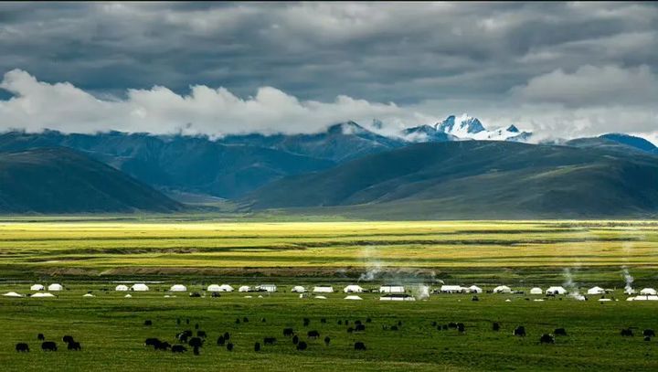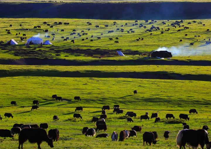 分佈在牧場各處的帳篷裡炊煙嫋嫋