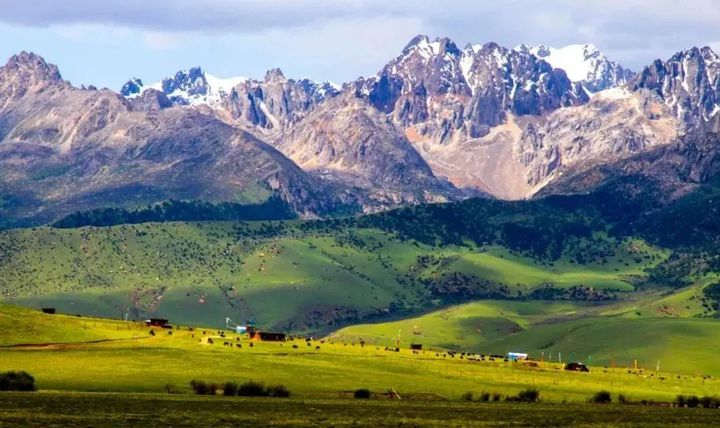 格木草原地勢起伏,雪山林立