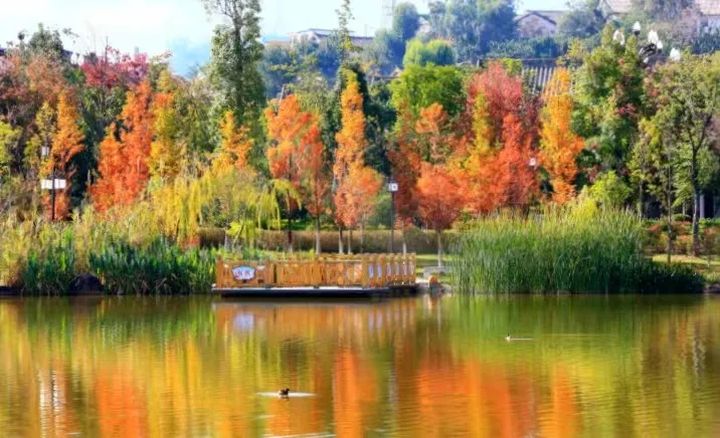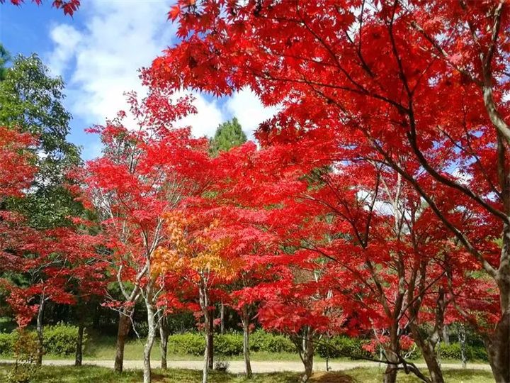 “萬林秋葉染天工,夾綠編黃染面紅”的美景