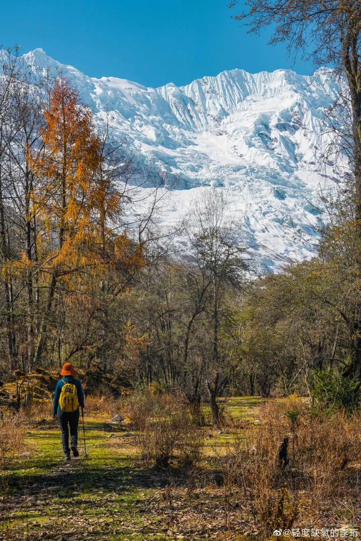 遠處的雪山和冰川與森林的絢爛遙相呼應
