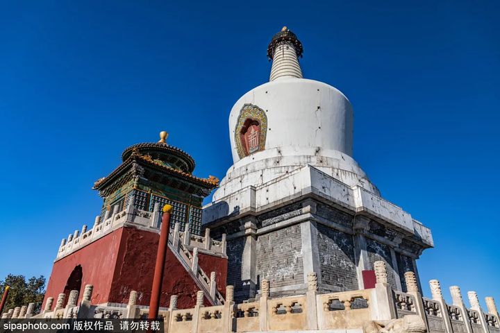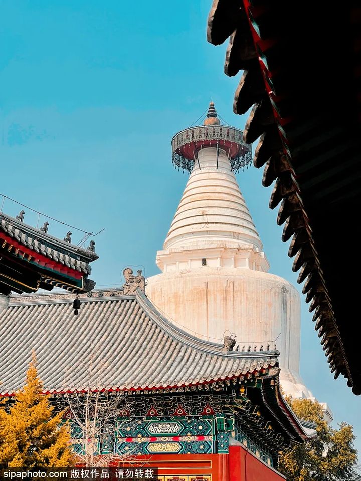 威儀的寶塔矗立於瓊島頂峰,綠蔭擁簇,巍峨壯美,引人矚目,彰顯出帝王氣勢,是皇家園林北海的一座代表性建築。