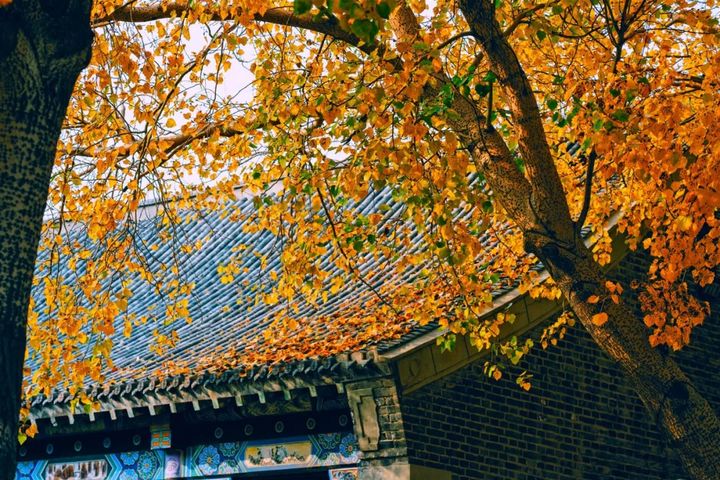 泛黃的樹葉妝點著宮院的每一處