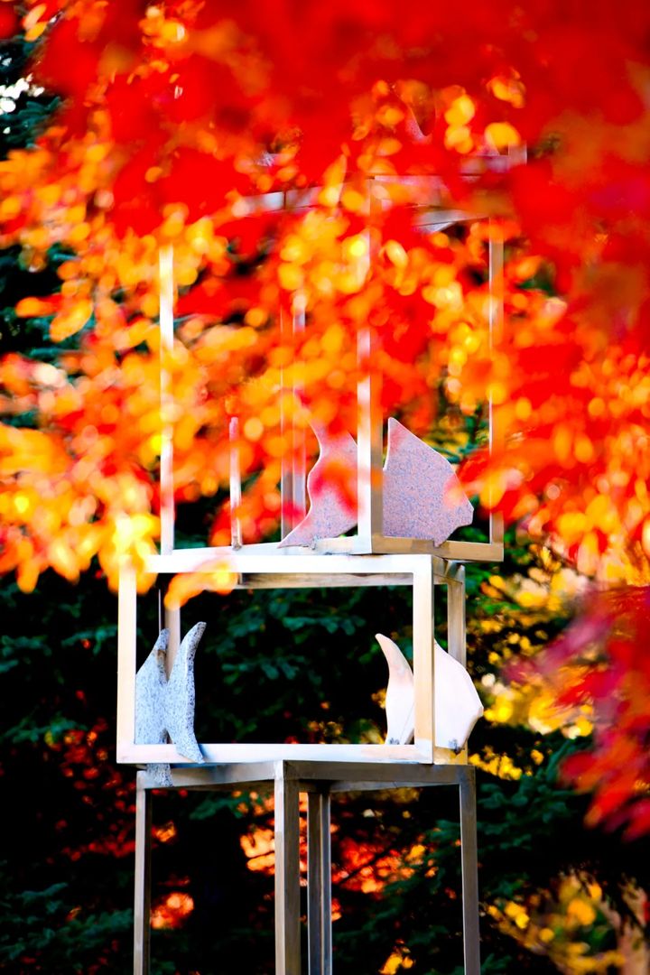 雕塑與楓葉的完美融合