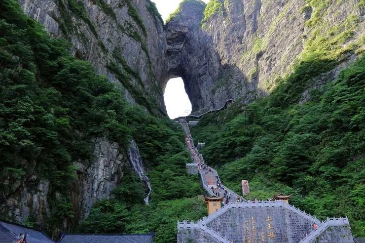 天門山國家森林公園——風景秀麗自不用多說,擁有天門山玻璃棧道,恐高慎入!想必大家也都有所耳聞,這座外媒眼中的“英雄橋”據說是世界最長、最高的大峽谷玻璃橋,置身300公尺高的半空,俯身看看腳下的風景,腦補個畫面隨意感受一下。