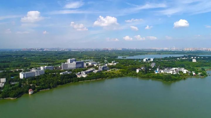 蜀山湖位於安徽省合肥市合肥城區西北,老百姓叫它董鋪水庫,與蒼翠的大蜀山相守相望。 科學島宛若扁舟,靜臥蜀山湖畔。 長江西路如巨龍蜿蜒在這山水之間,車水馬龍,與安靜的小島動靜相宜。