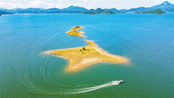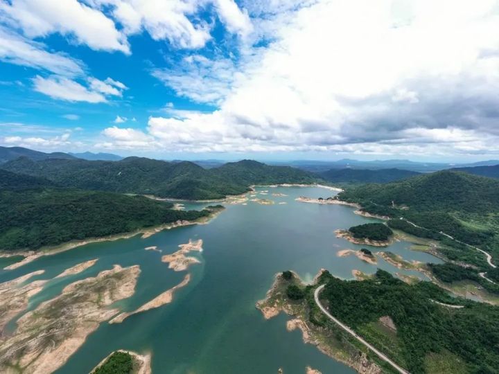 大廣壩截斷昌化江成湖,作為海南第二大水庫,大廣壩水庫蓄水達17億立方公尺,水庫湖面100平方公里,庫區水美、山秀、雲奇,是旅遊休閒的絕佳去處。 從空中俯瞰,庫區呈現狹長的“水滴子”形狀,兩岸有眾多可供遊玩的湖灣。