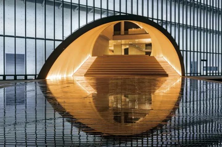 說起嘉定最適合拍照的地方,上海保利大劇院絕對榜上有名。 作為安藤忠雄的力作,上海保利大劇院沿襲了他的幾何美學,曲線與直線的交錯勾欄,劃出了正方、正元、三角等空間,加上水面倒影,簡直絕美。