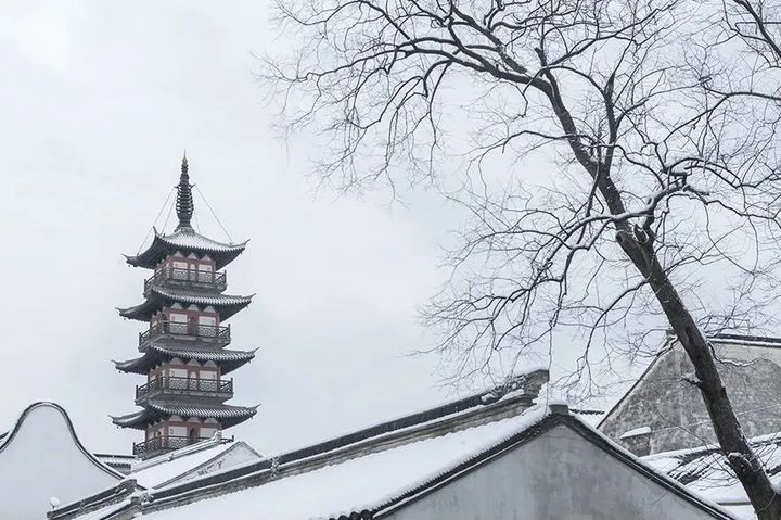 法華塔是嘉定毋庸置疑的象徵,無論從哪個角度,你都能看到這座磚木結構的七層方塔。 州橋老街的粉牆黛瓦與法華塔互相映襯,無論春夏秋冬,向世人展示著風雅嘉定的千年古韻。