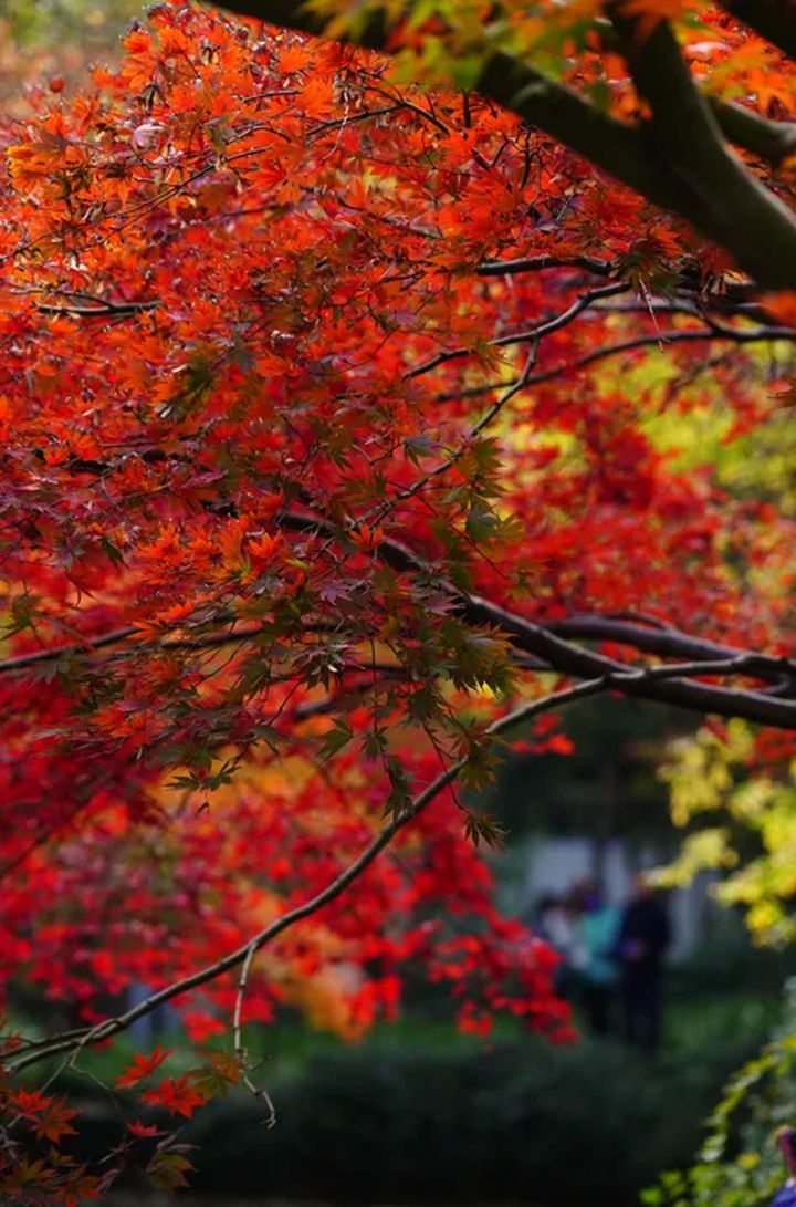此時的秋霞圃,楓葉紅透,落葉鋪滿了石子小徑,吸引了無數遊人的目光,不少漂亮的小姐姐特意穿著漢服,前來定格嘉定深秋初冬的美,享受這趟穿越時空的古典之旅。