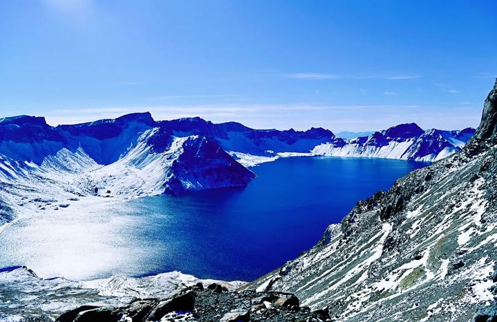 此時的天池水尚未結冰,壯美的天池猶如一塊明鏡被群山環繞,散發著空靈寂靜之美,令人直呼神奇。 能與天池留下一張合影發朋友圈,不知道有多少朋友會羨慕你的幸運,畢竟,神秘的天池不是誰想見就能見到的。