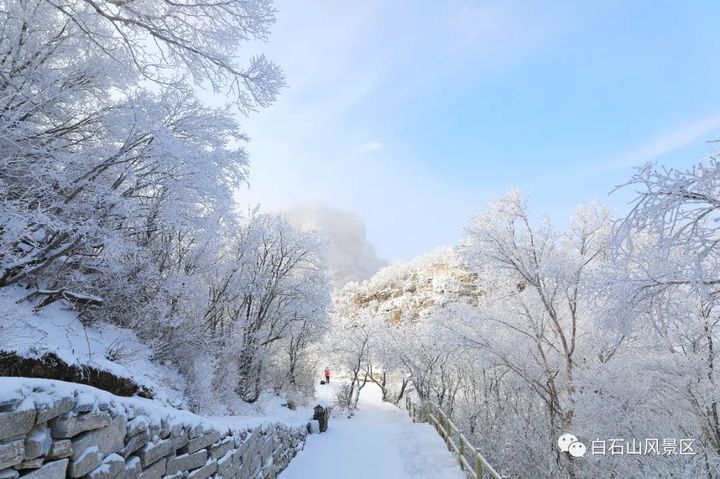 保定的白石山成為最耀眼的舞臺,飛雪是重量級的妝容,樹木則搖身一變,成為了奇峰怪石華美的“霓裳羽衣”,它們共同打造了一場屬於白石山的冬日大戲。