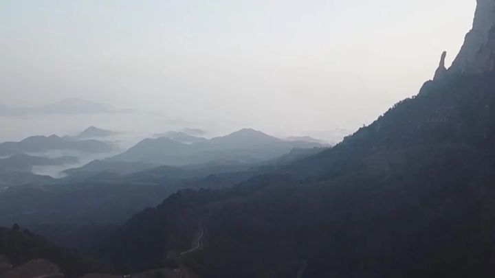 眺望雲霧中的遠山,飄渺的流雲與青翠的群山,構成了一幅濃墨淡染的山水畫卷,靈動飄渺,令人神往。