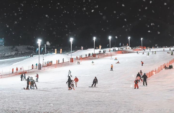 除了白天以外,這裡也開了夜場,夜場的燈光夠亮,還設有好看的螢光雪道,相比於嚴寒的大東北,在咱陝西的晚間滑雪別有一番樂趣。