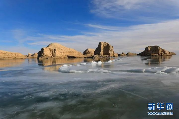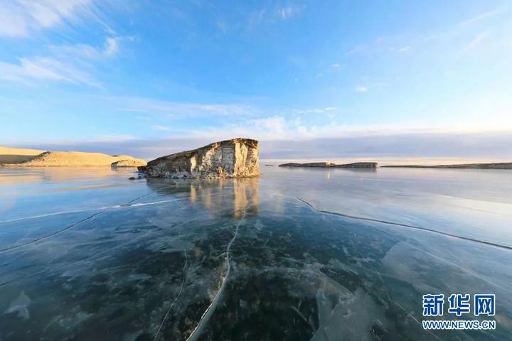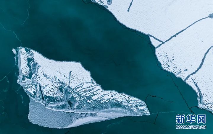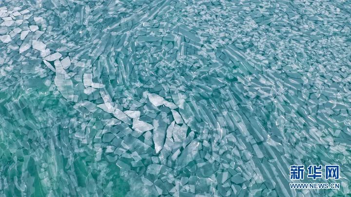 封凍的湖面如同破碎的“玉帶”,形成獨特的景觀。 新華網發(宋忠勇 攝)