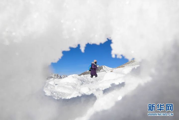 登山愛好者攀登崗什卡雪峰。 新華社記者 張龍 攝