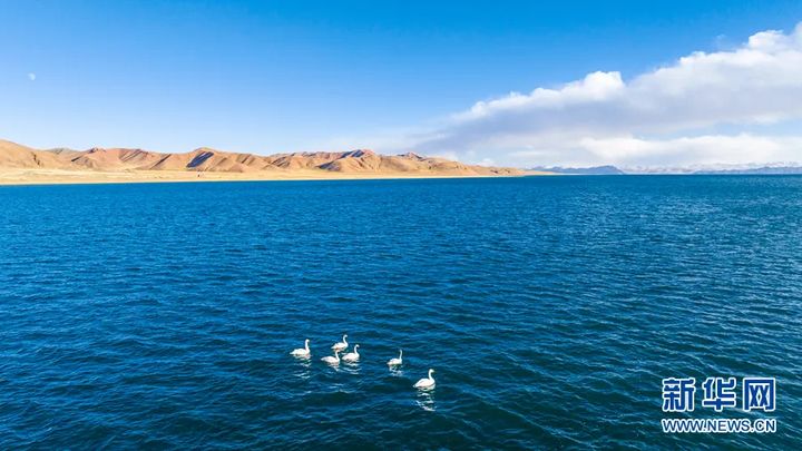 一群大天鵝在湖面上遊弋,怡然自得。 新華網發(李友崇 攝)