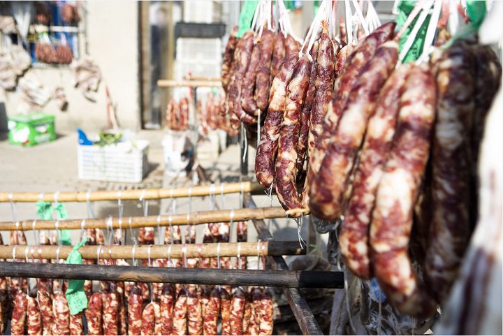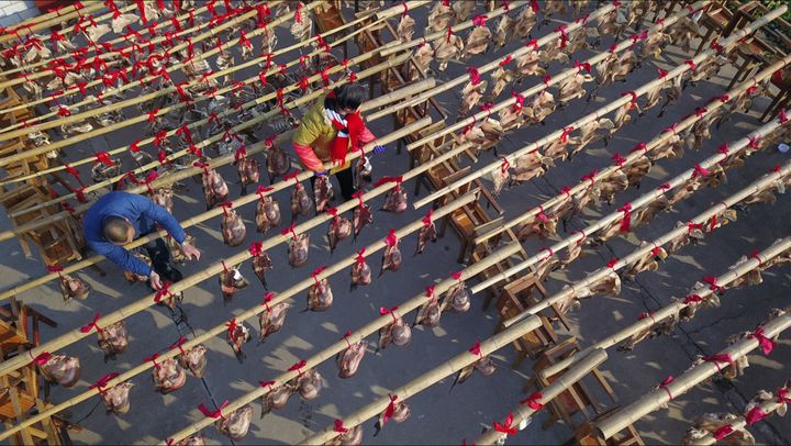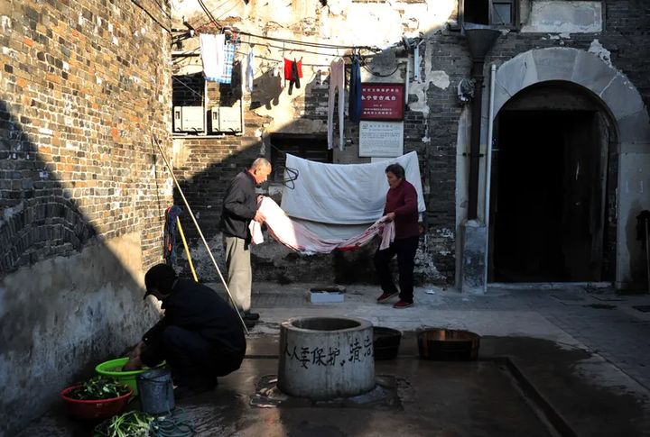 喜歡把鹹貨掛在院牆邊上、院子裡晾曬