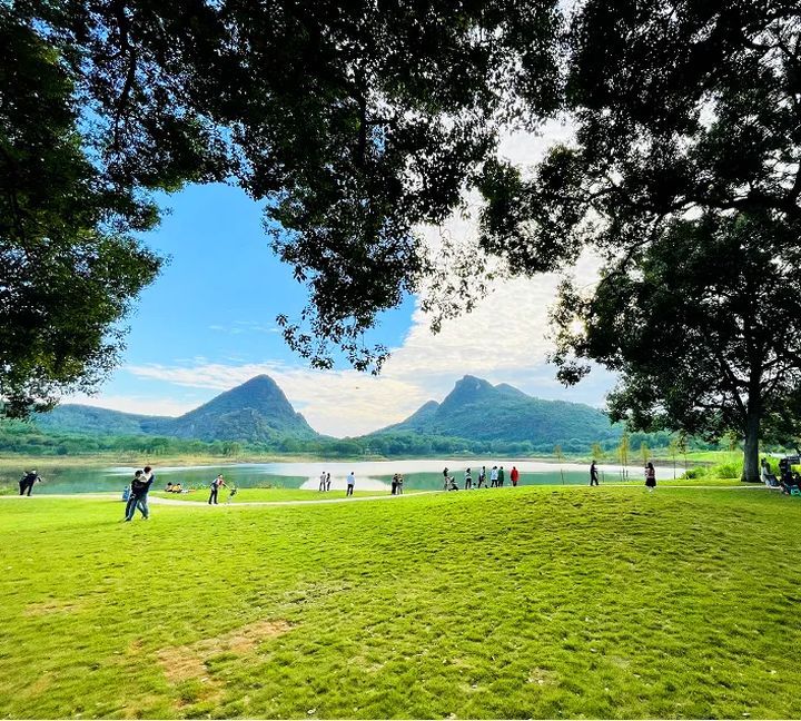 登上馬鞍山頂,清爽的涼風撲面而來,曲江全城的美景一覽無餘,美不勝收。