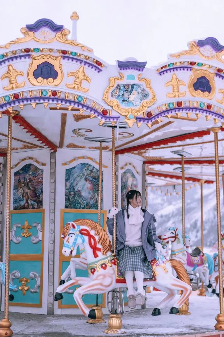 聽說旋轉木馬會帶來好運,在海拔3733公尺的雪山坐旋轉木馬的話,好運應該會更持久吧。