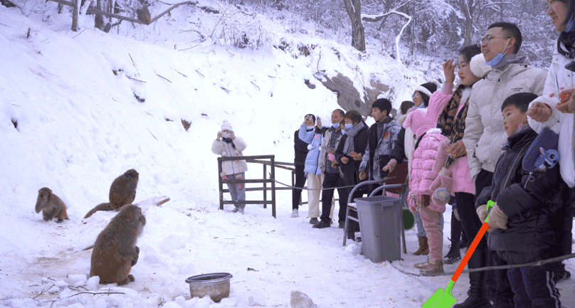 除了銀裝素裹的雪地美景,滑雪場還有很多可愛乖巧的小靈猴。大家可以投喂小猴子們,可以和它們親密接觸,獲得雪地新樂趣。
