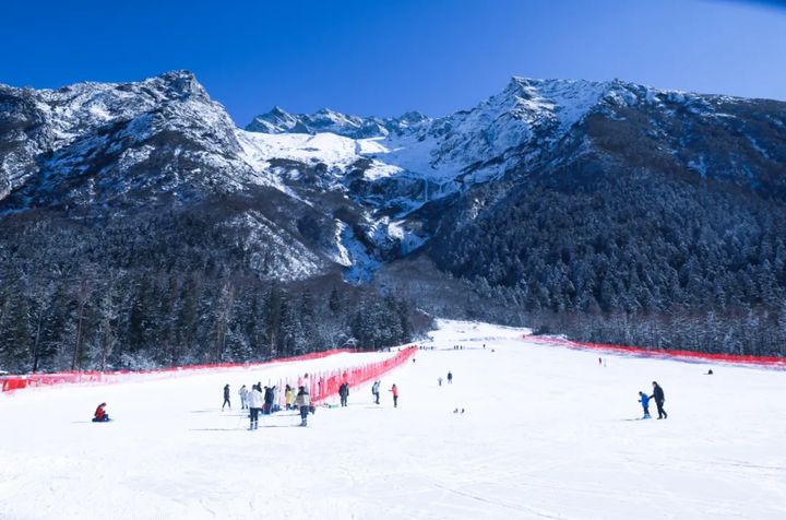 西嶺雪山景區作為南方已建成的規模大、設施完善的大型高山滑雪場,雪場內共設7條雪道,雪道總面積約20萬平方公尺,可同時容納2300人滑雪。