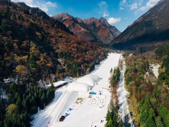 雪場位於汶川至茂縣方向,距成都市160公里。海拔2750公尺,設有初級道3條、中級道3條、高級道2條、戲雪道3條,總長4.2公里。