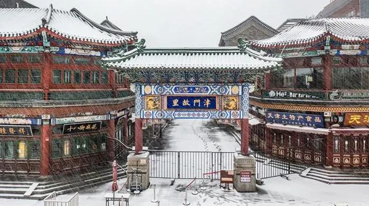 當冬日的雪花輕輕飄落,天津古文化街仿佛被披上了一層潔白的紗衣,古樸的建築與晶瑩的雪花交相輝映,構成了一幅幅令人心動的畫面。