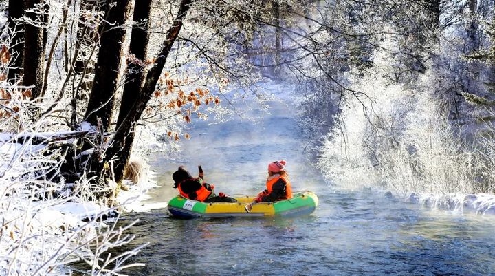 你可以選擇霧凇漂流,乘著皮划艇,在雪林中穿梭,看河面雲霧繚繞,樹木參天;你可以坐在五彩繽紛的星空蘑菇帳篷裡,在零下20度的天氣裡體驗原始冰釣;你可以駕駛雪地摩托,穿越林海,馳騁雪野。