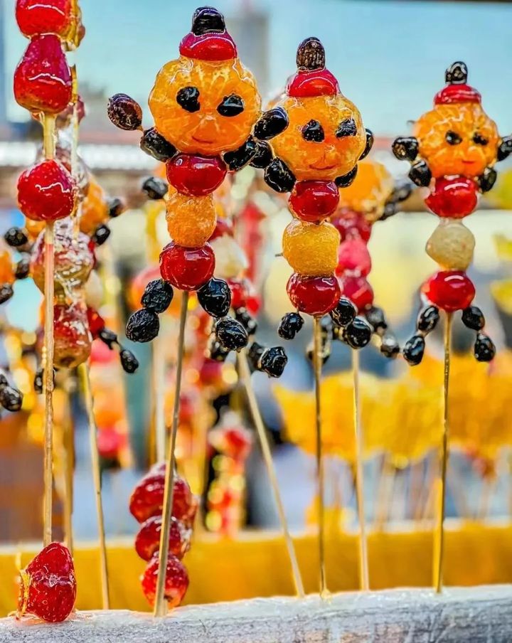 同理,萬物皆可糖葫蘆,山楂這種常規選項未免太沒趣了,各種水果,葡萄、草莓、菇娘兒、橘子、鳳梨……也早都被一一試過,紅腸、辣椒、辣條……才是熱門賽道上的熱門選手。