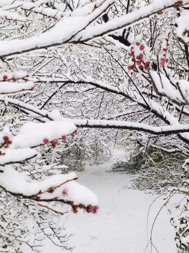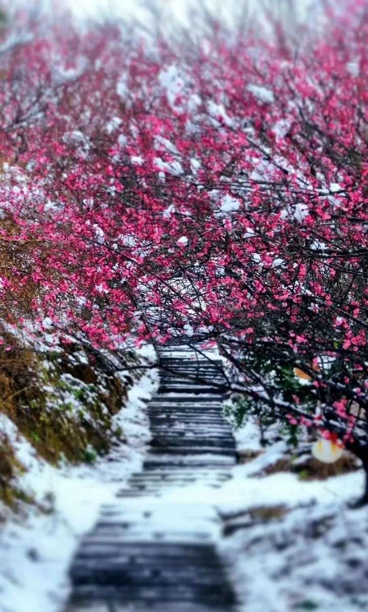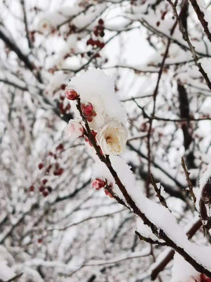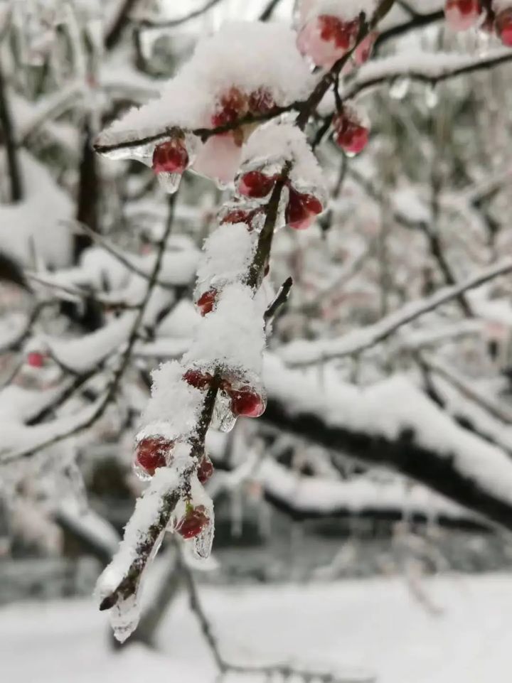 今春梅花被雨雪洗禮,那些小小的花朵被冰雪封凍,依然不改風骨,於嚴寒中綻放,於雨雪中傲然。這不正是我們逆境中不妥協,不畏艱難追尋心中夢想的真實寫照嗎?