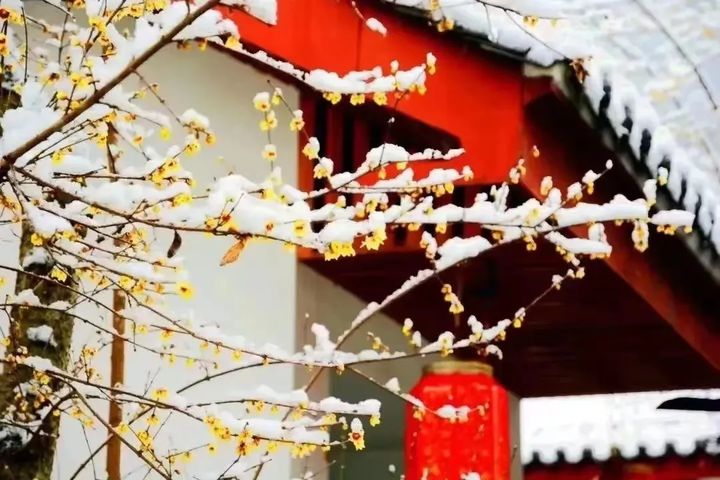雪在梅的綻放中愈加地柔美靜謐;梅在雪的紛飛中更顯清雅高潔。聆聽雪落,品鑒梅香,自是令人心醉神往。